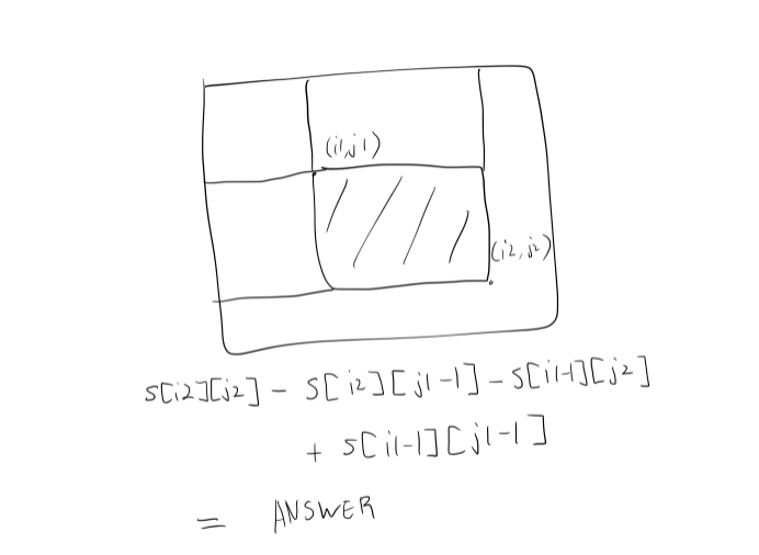 문제: https://leetcode.com/problems/matrix-block-sum/ Matrix Block Sum - LeetCode Level up your coding skills and quickly land a job. This is the best place to expand your knowledge and get prepared for your next interview. leetcode.com 2d vector에서 특정 구간의 합을 구하는 문제다. k값이 주어지고, 2d vector 안의 (y,x) 포인트에서 i - k = lenX ? lenX - 1 : j + k; mat[i][j] = pSums[moreI + 1][moreJ + 1] + pSums[lessI][lessJ] - ..